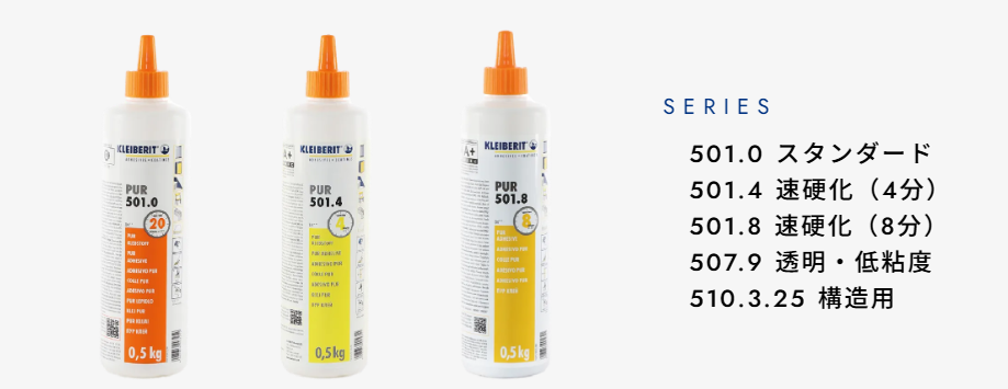 | KLEIBERIT 501.4 | 速硬化タイプ(約4分)/高耐水性 | 短時間施工やライン生産向け |